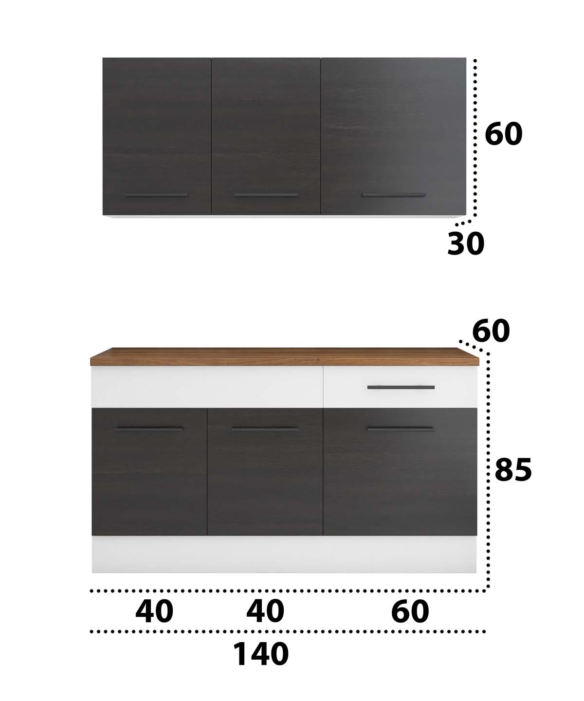 Bucatarie Sofia 140 cm, Wenge / Alb, Blat termic nuc