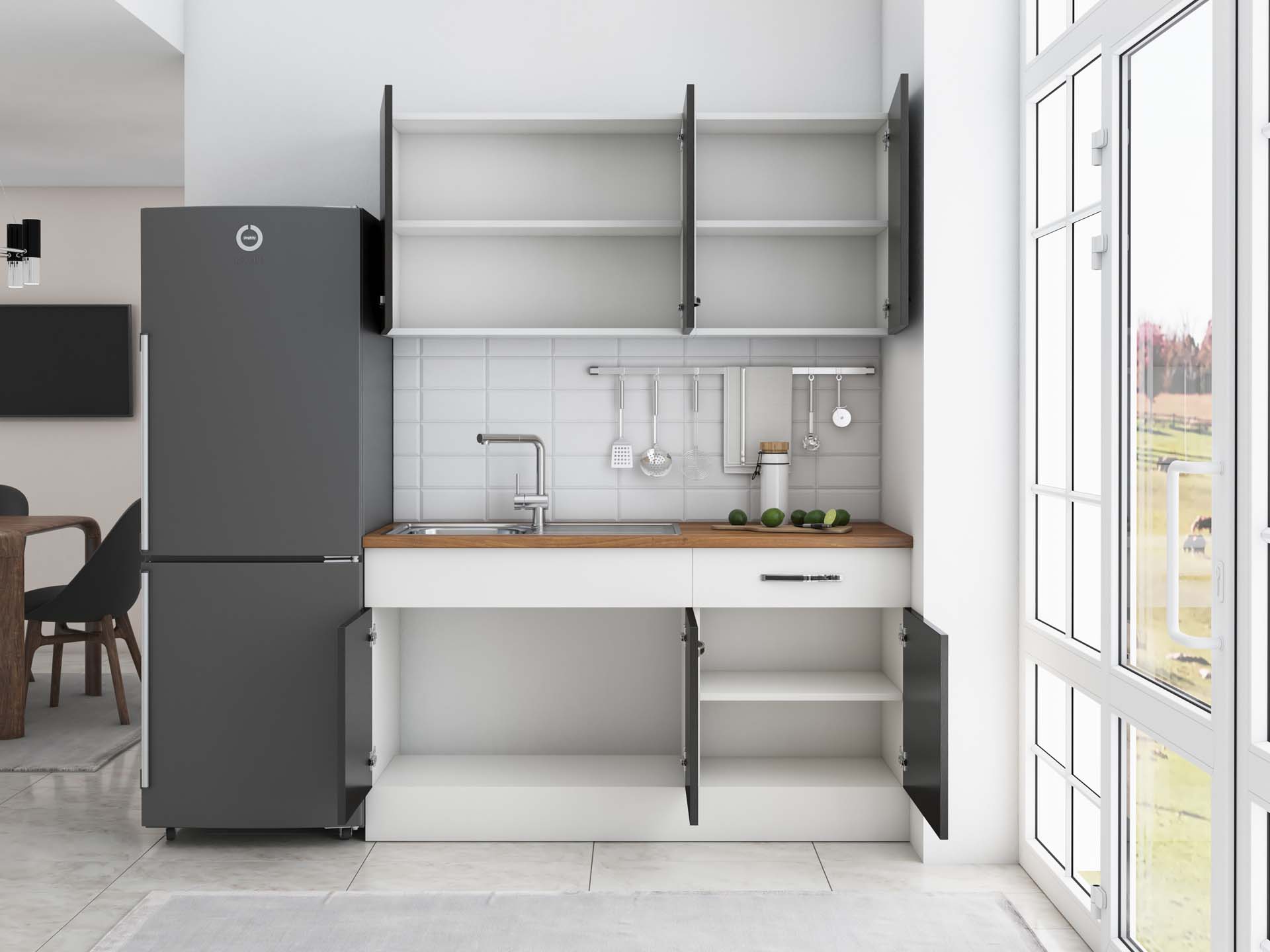 Setul este format din 2 corpuri spațioase, unul superior și unul inferior, special gândite, astfel încât fiecare obiect din bucătărie să își poată găsi locul iar spațiul să fie eficientizat și valorificat.
