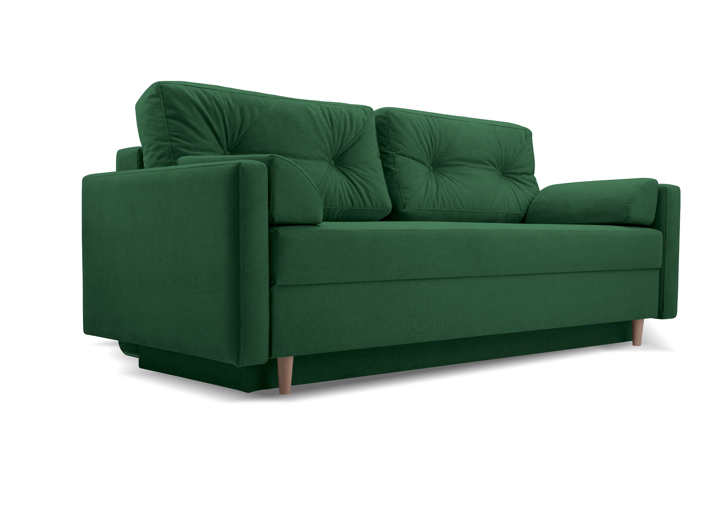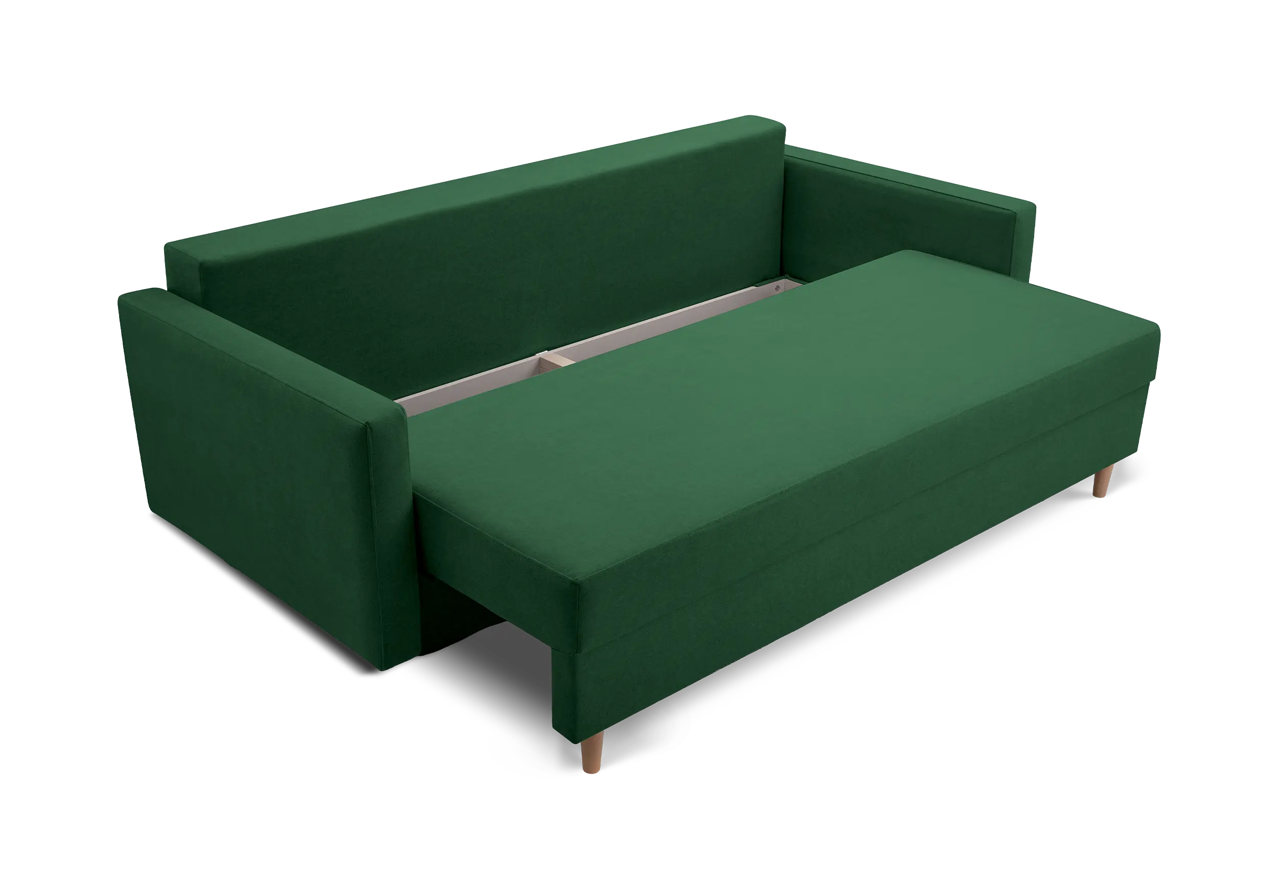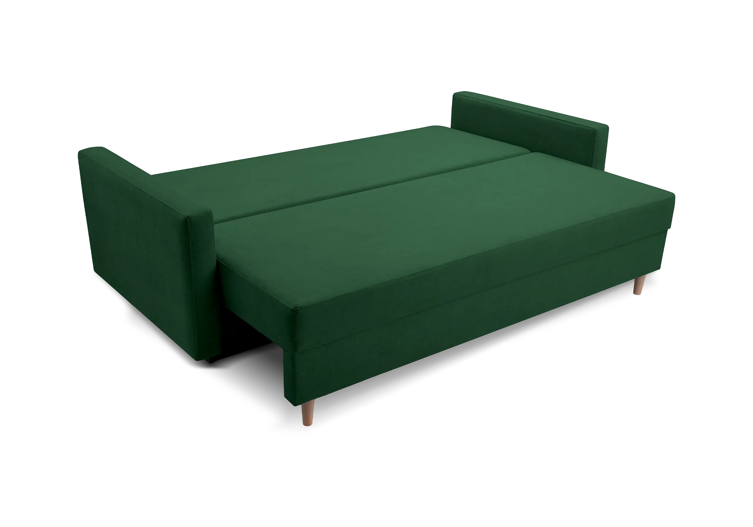Canapeaua are funcție de dormit, măsoară 153x189 cm și se deschide rapid și ușor. Un compartiment de depozitare pentru lenjerie de pat este un bonus suplimentar. Spătarul acoperit cu material textil permite amplasarea versatilă în orice cameră.