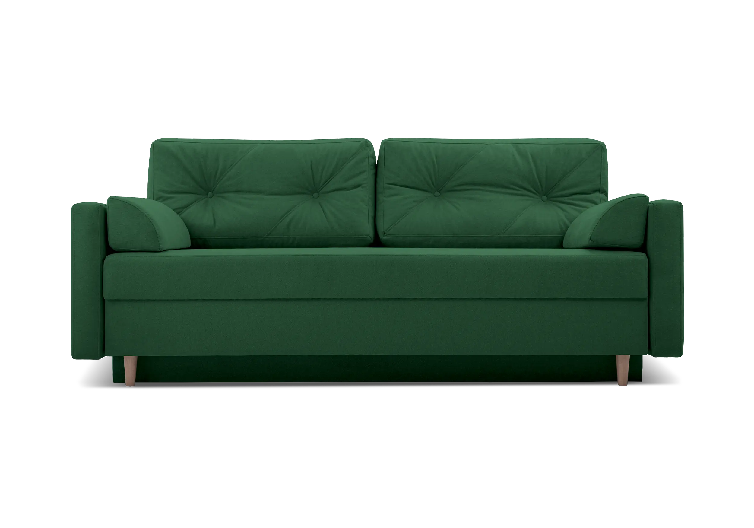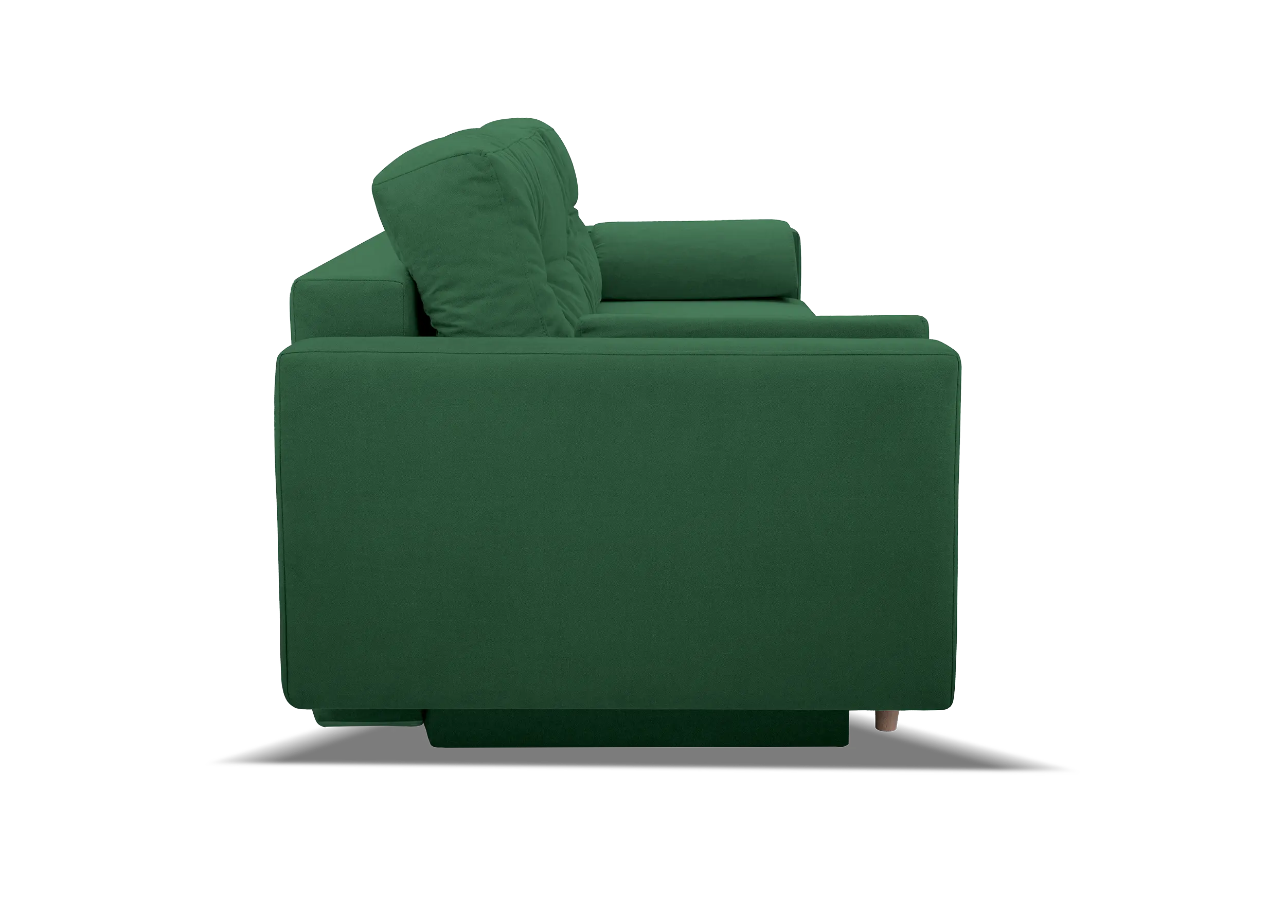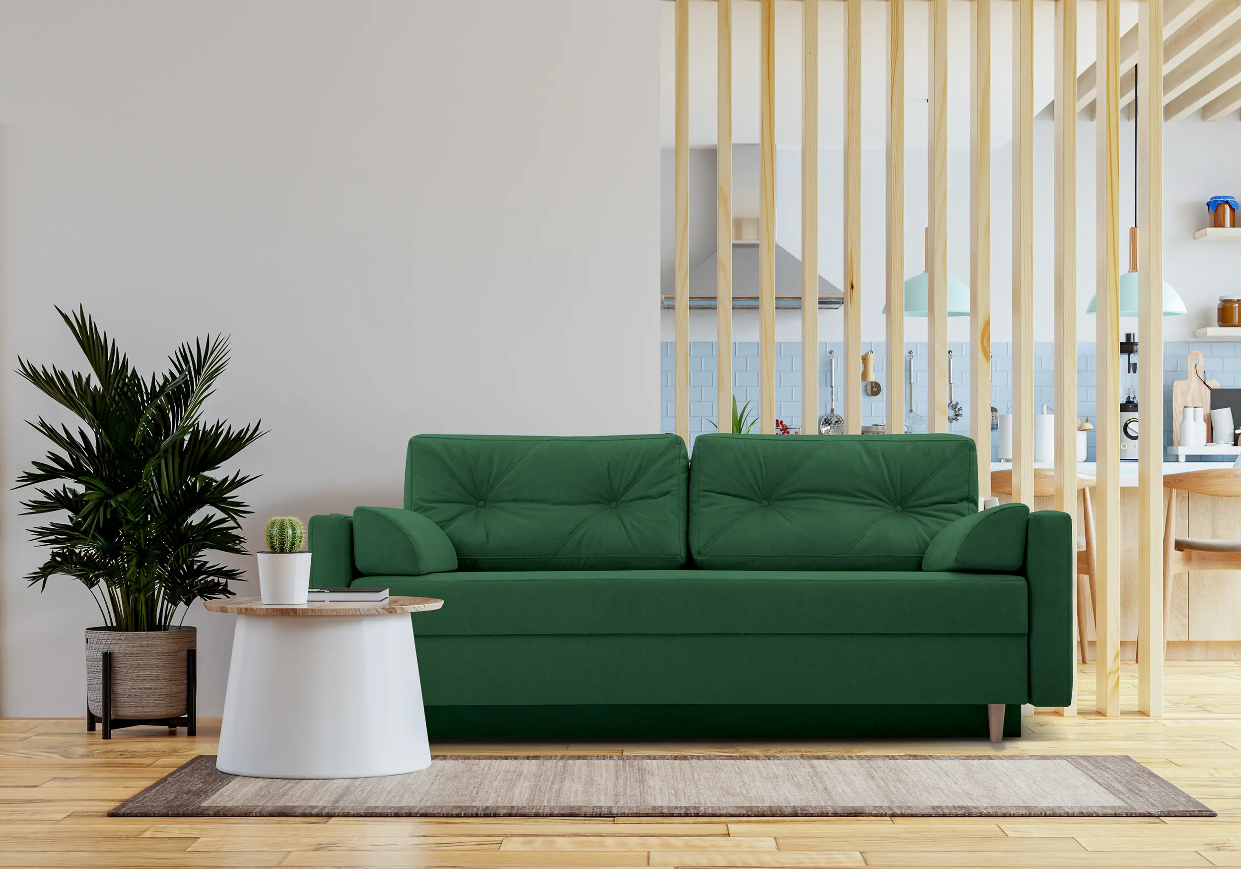 Canapeaua are funcție de dormit, măsoară 153x189 cm și se deschide rapid și ușor. Un compartiment de depozitare pentru lenjerie de pat este un bonus suplimentar. Spătarul acoperit cu material textil permite amplasarea versatilă în orice cameră.