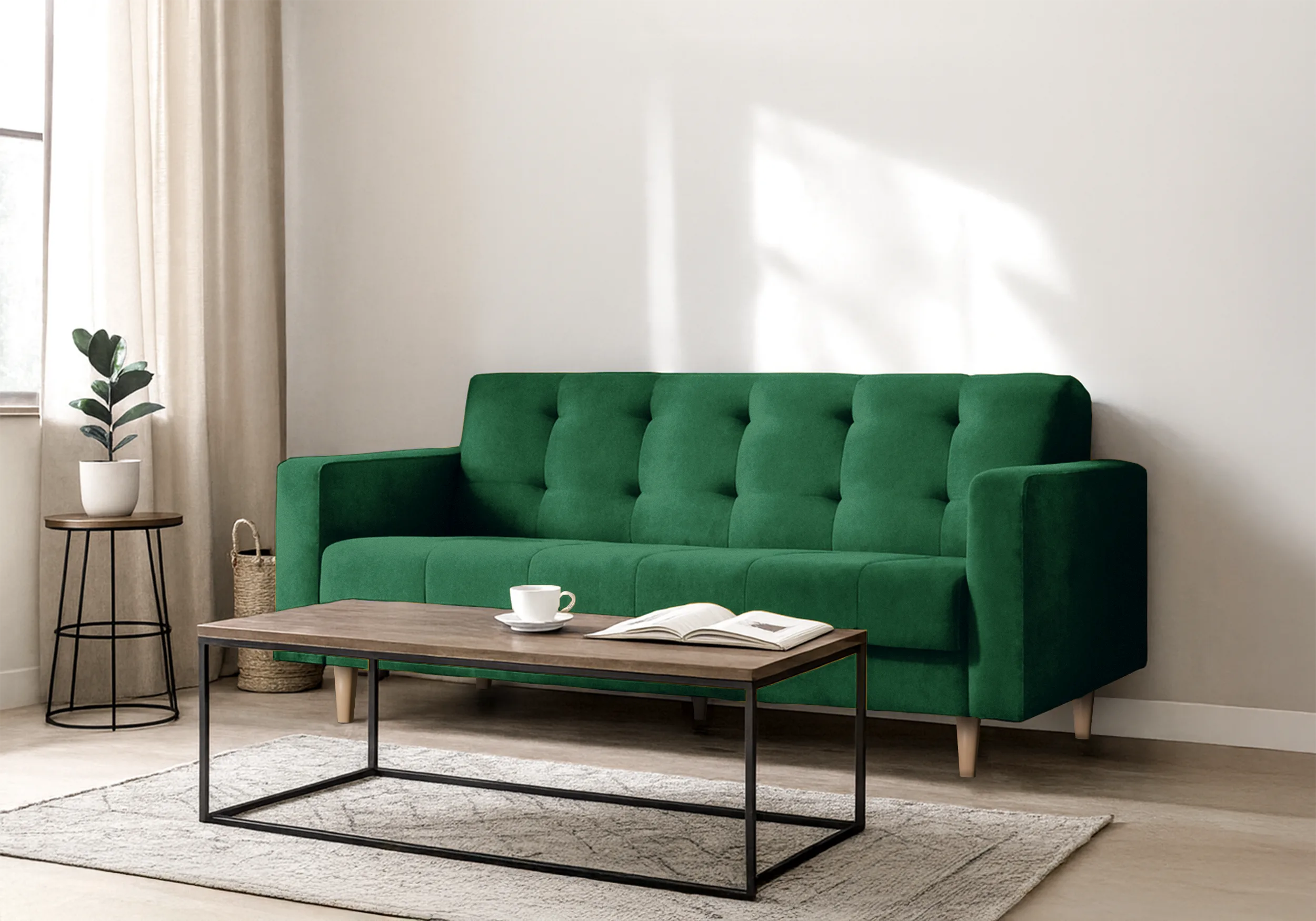 - Canapeaua este independentă (spătarul este tapițat cu material de catifea)
