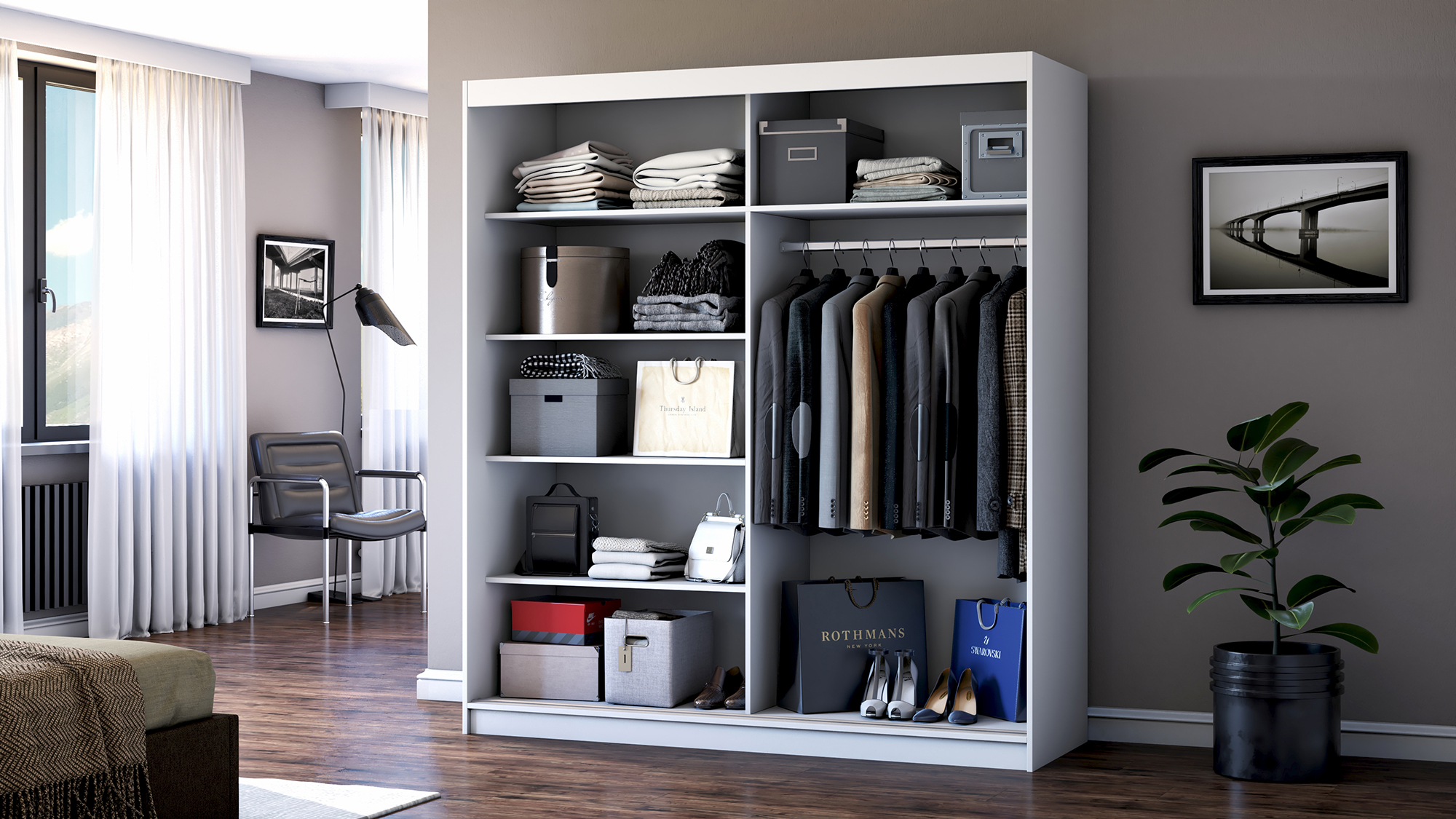 Dressingul Radu se va potrivi cu ușurință cu designul existent al interiorului casei tale dar și a întregului mobilier din dormitor, living sau hol fiind special gândit astfel încât tu să poți organiza cu ușurință diferitele tipuri de îmbrăcăminte sau accesorii în fiecare compartiment. Compartimentarea îți permite organizarea garderobei în funcție de sezon, gruparea pe categorii dar și amplasarea cutiilor pentru depozitarea micilor obiecte. Are în componență o bară pentru umerașe dar și 6 rafturi spațioase ce oferă suficient spațiu pentru hainele ce pot fi pliate.