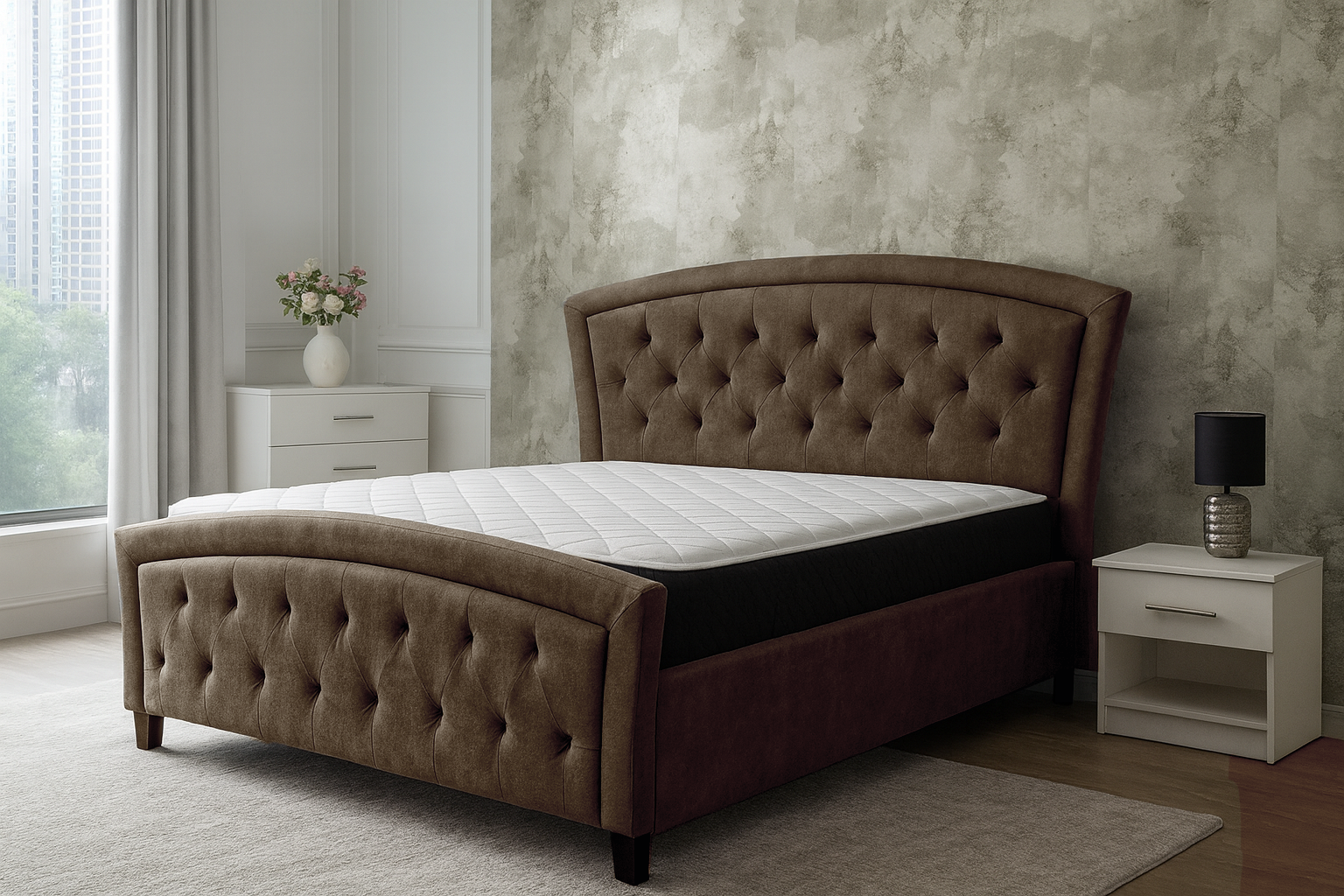 Bucatarie de colt Alfa, Corp inalt cuptor, Cu vitrina, Alb, Blat termic travertin