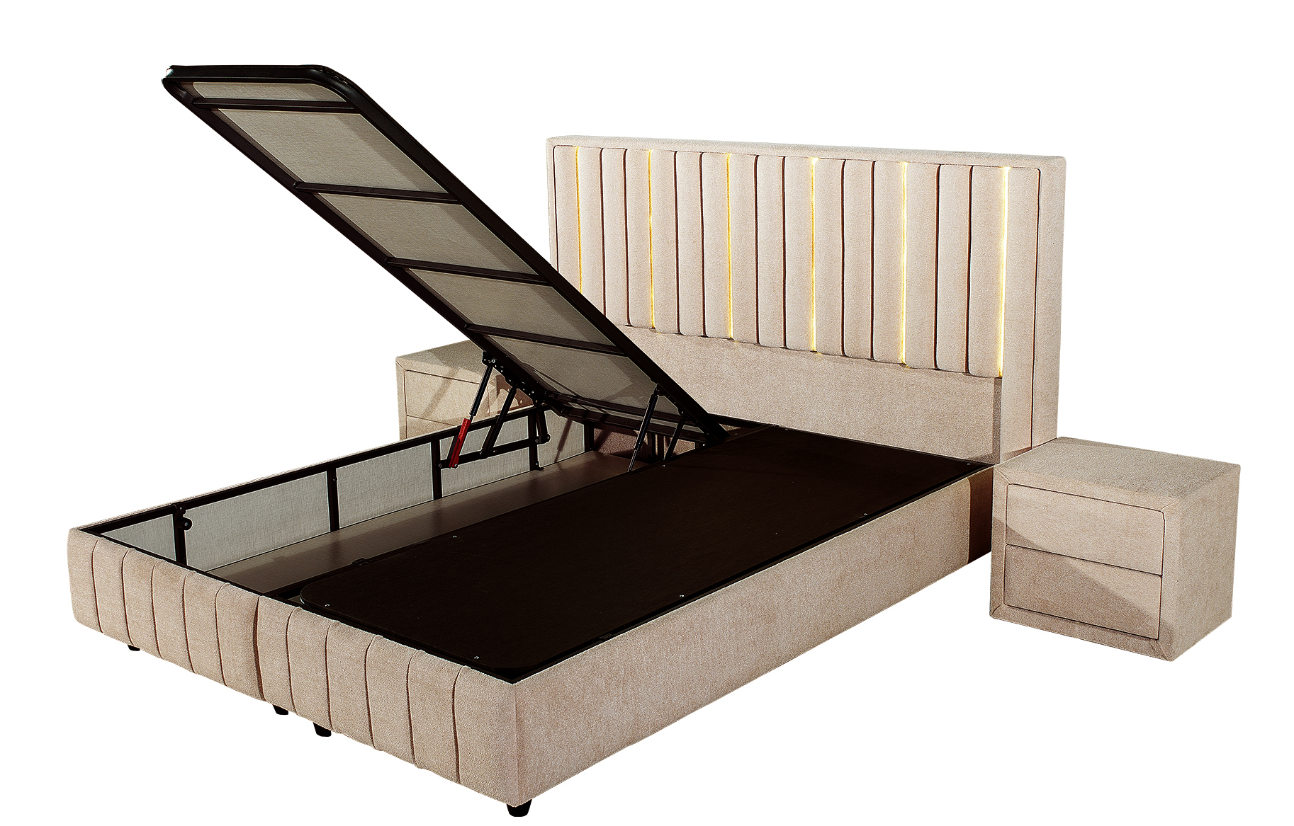 Pat Veloria, 160x200 cm, cappuccino, cu saltea si somiera metalica rabatabila, iluminare led