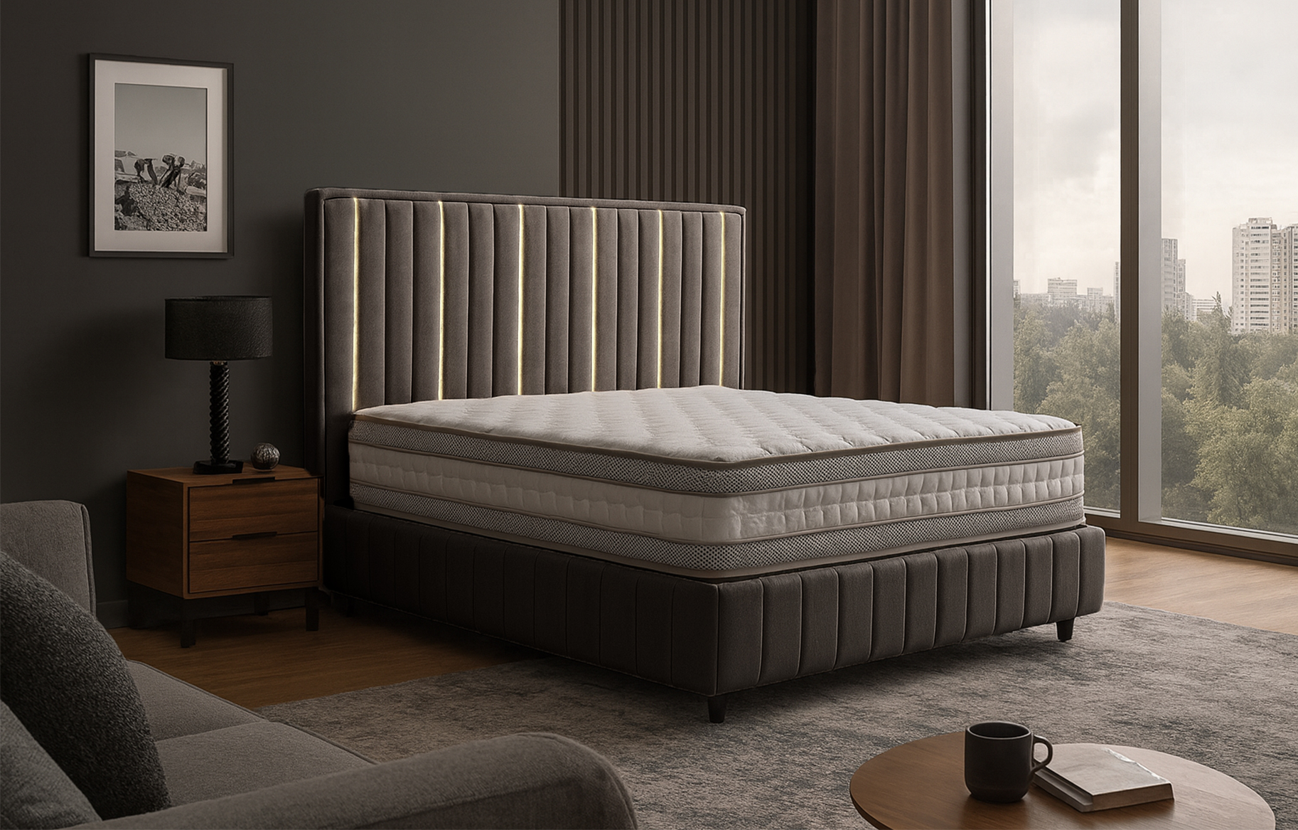 3. Construcție Durabilă: Modelul de pat este construit din materiale de înaltă calitate, ceea ce asigură durabilitate și rezistență în timp. Structura solidă îl face potrivit pentru a susține diverse tipuri de saltele.