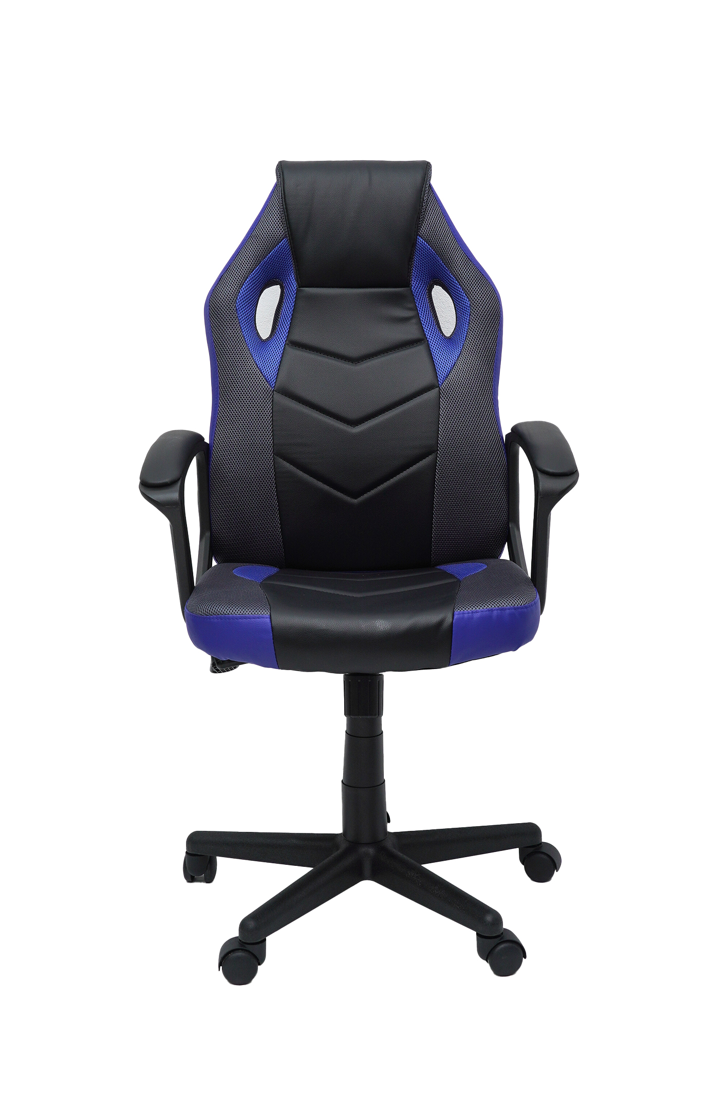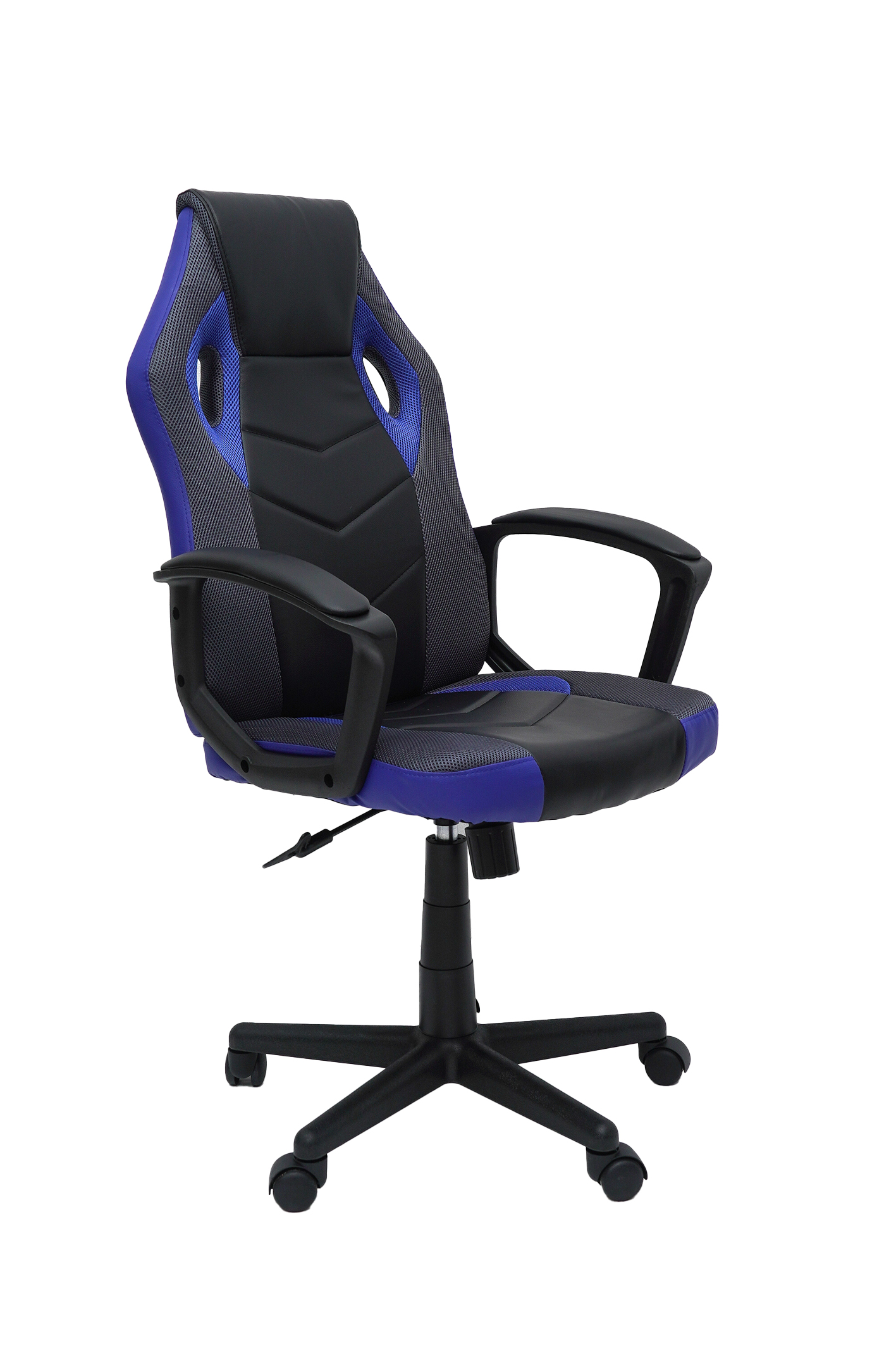 Scaun birou S-227, albastru/negru, piele ecologica/mesh textil