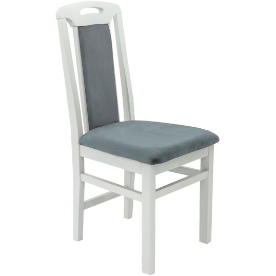 Scaun din lemn masiv de fag tapitat cu stofa Zim standard, alb, tapiterie gri deschis