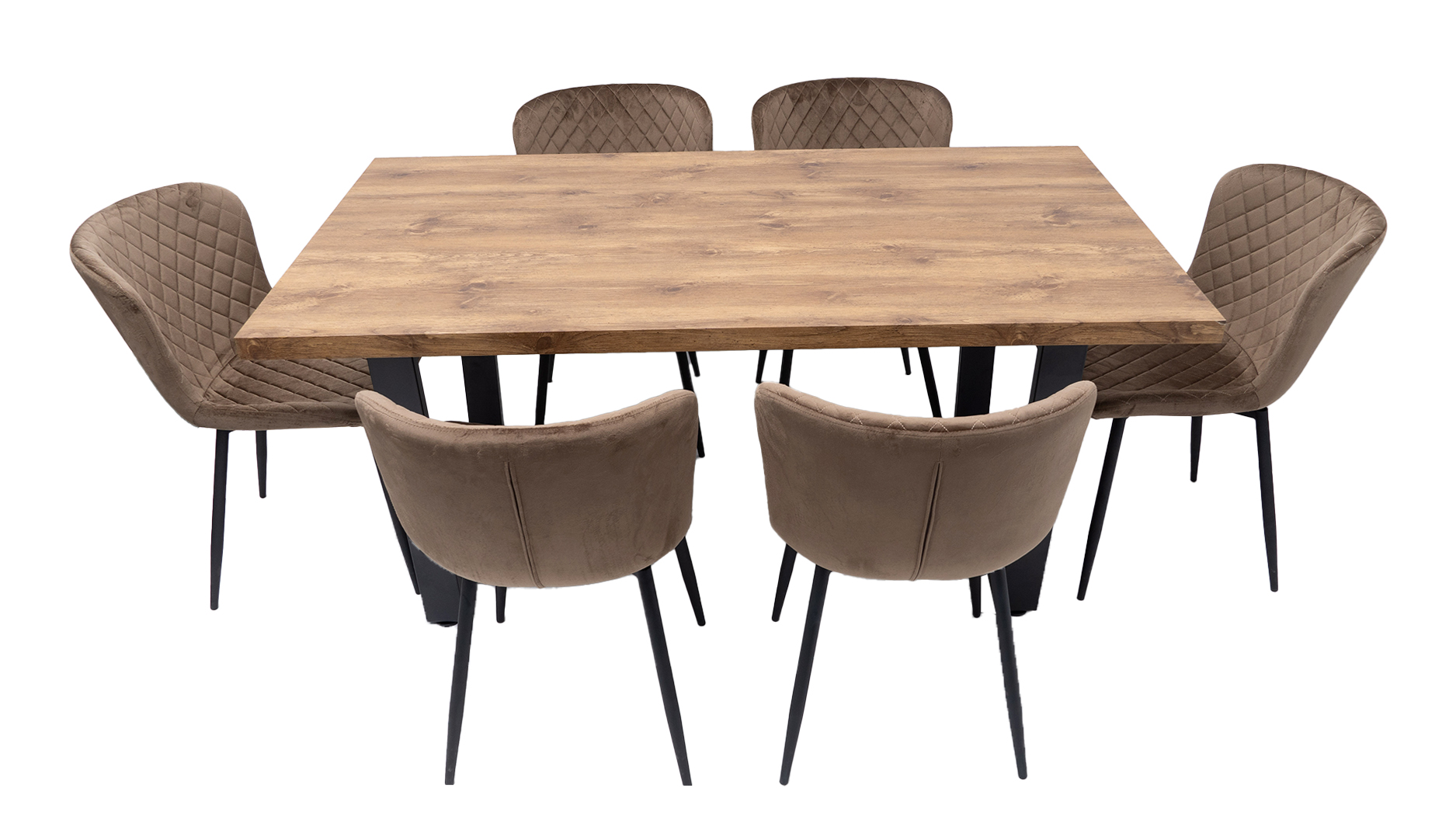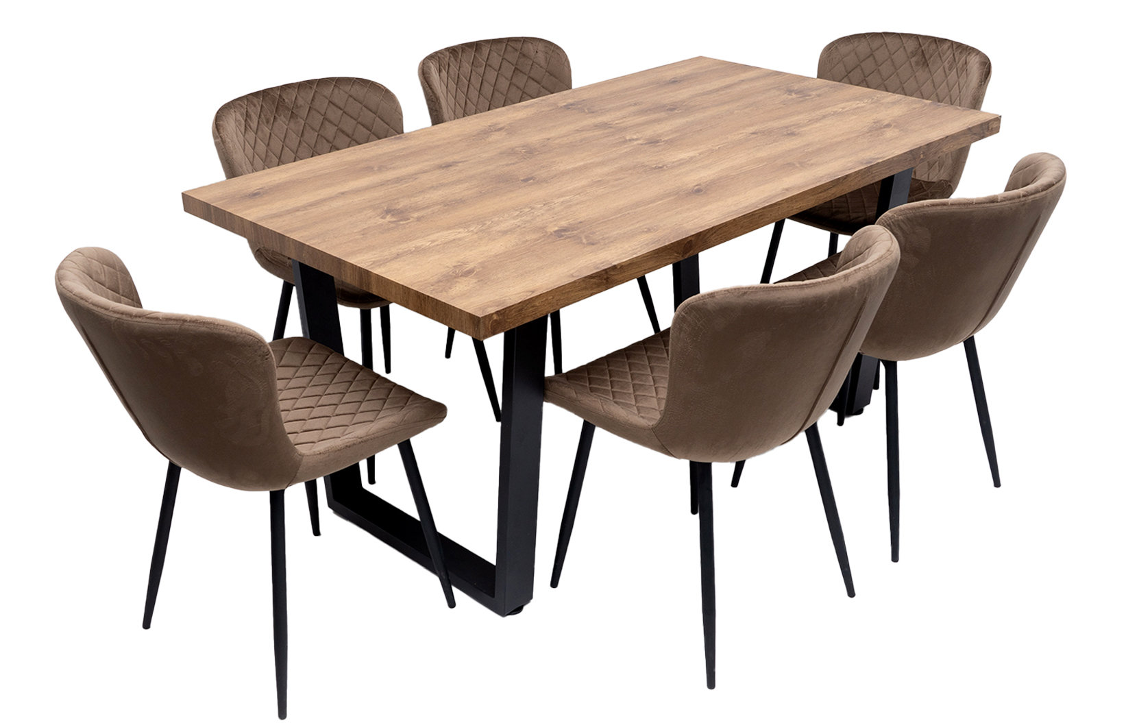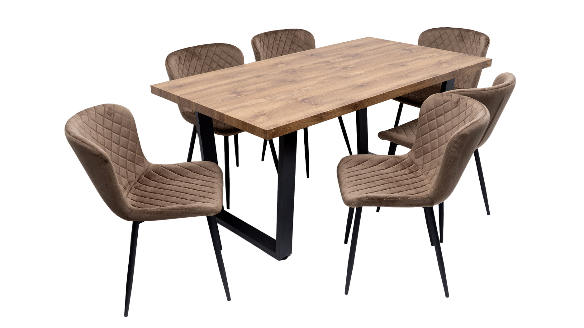 Set masa 160x90 cm MB-95, cu 6 scaune tapitate S-153 maro