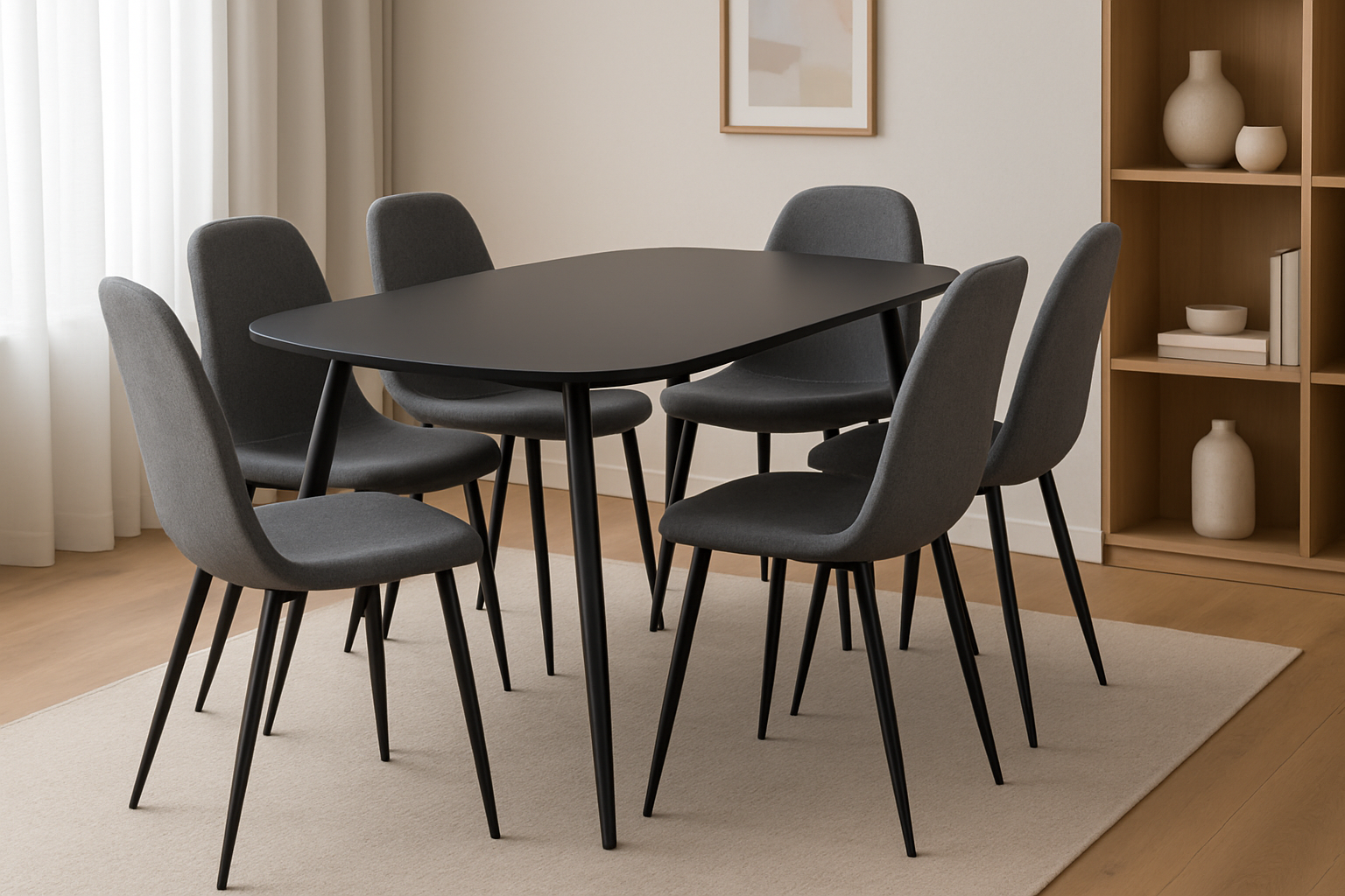 Creați un spațiu de luat masa rafinat și confortabil în casa dvs. cu ajutorul set. Acest set aduce un amestec perfect de funcționalitate, estetică modernă și durabilitate pentru a vă bucura de momente speciale alături de familie și prieteni.