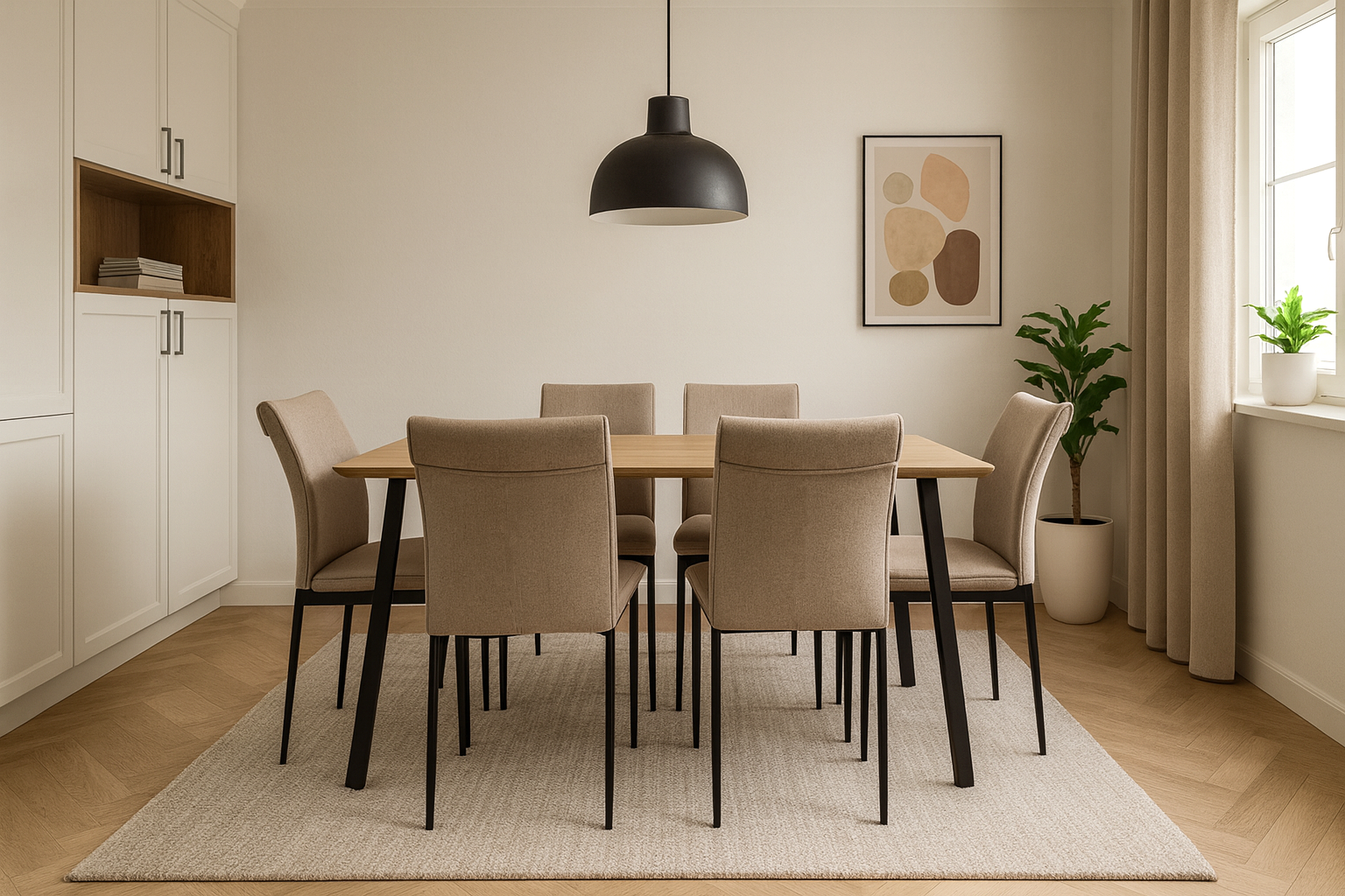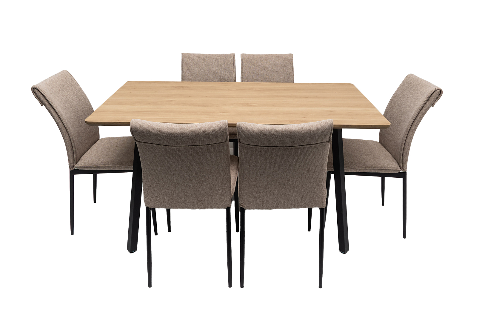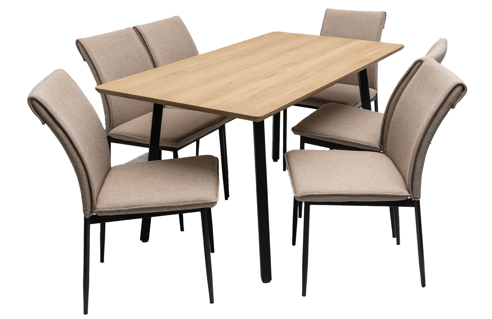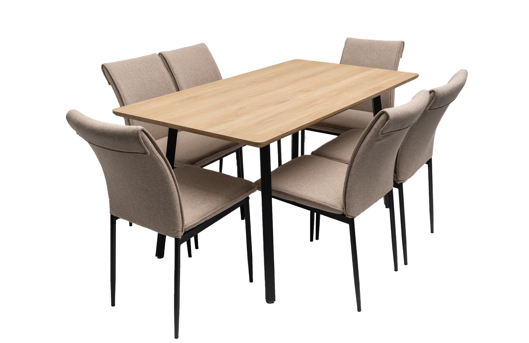 Set masa MBS-42 sonoma, 140x80cm, cu 6 scaune tapitate bej