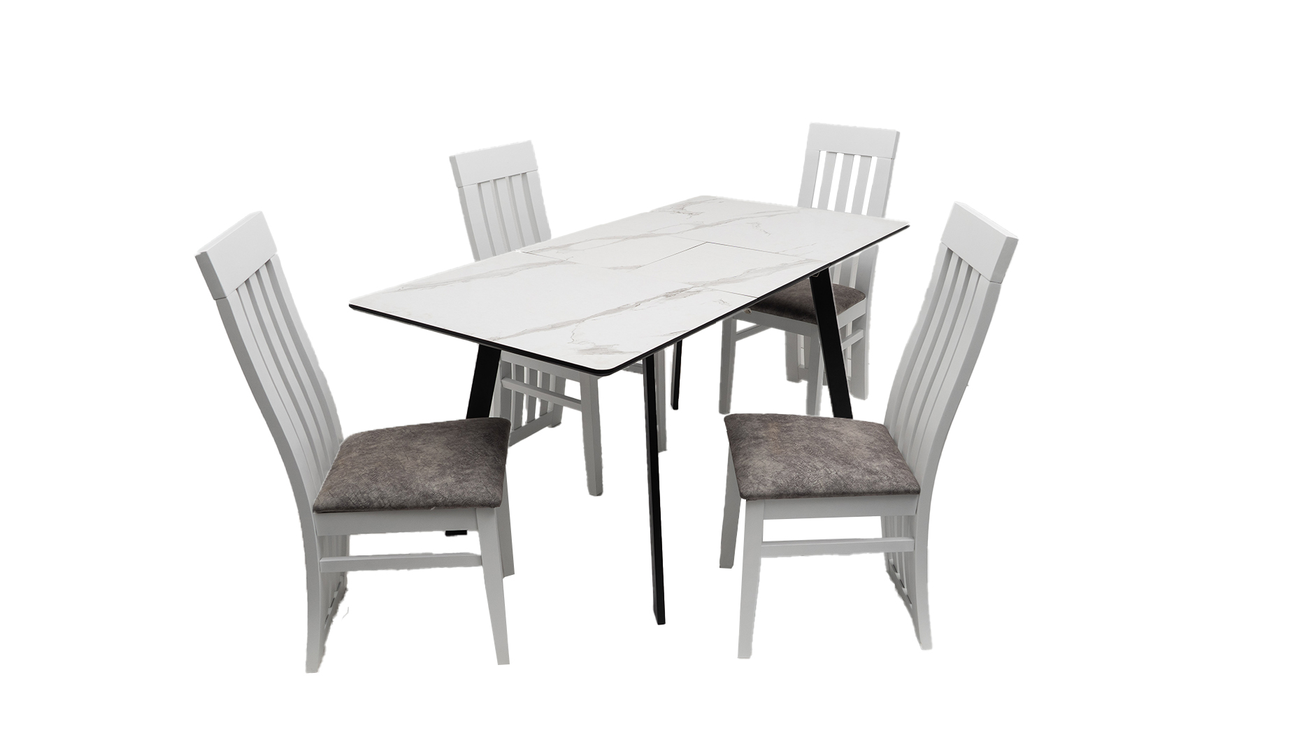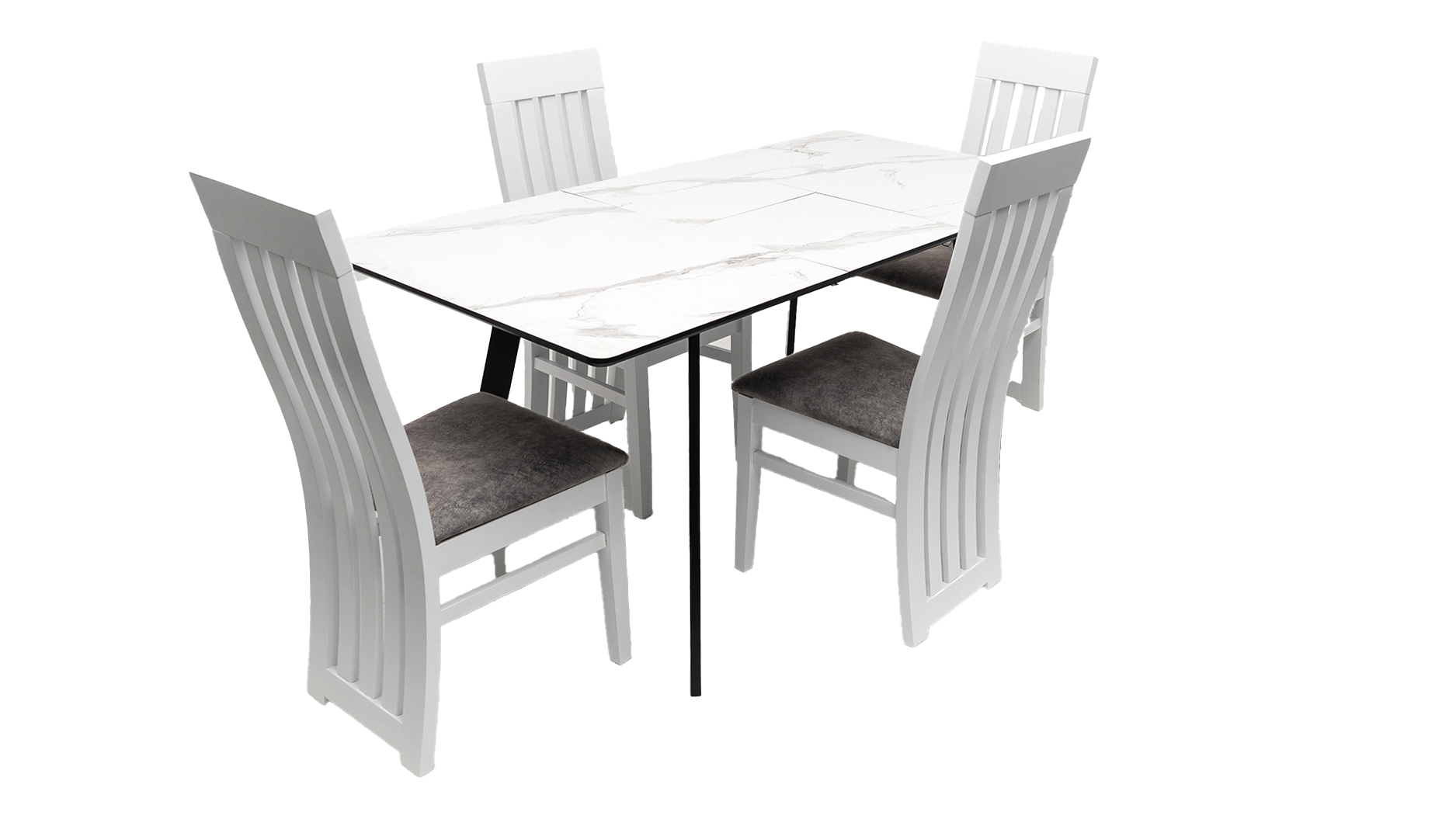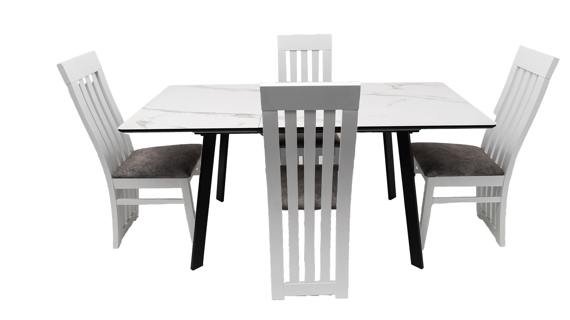 Set masa MBS-96 alb, cu 4 scaune tapitate S-104 alb/gri
